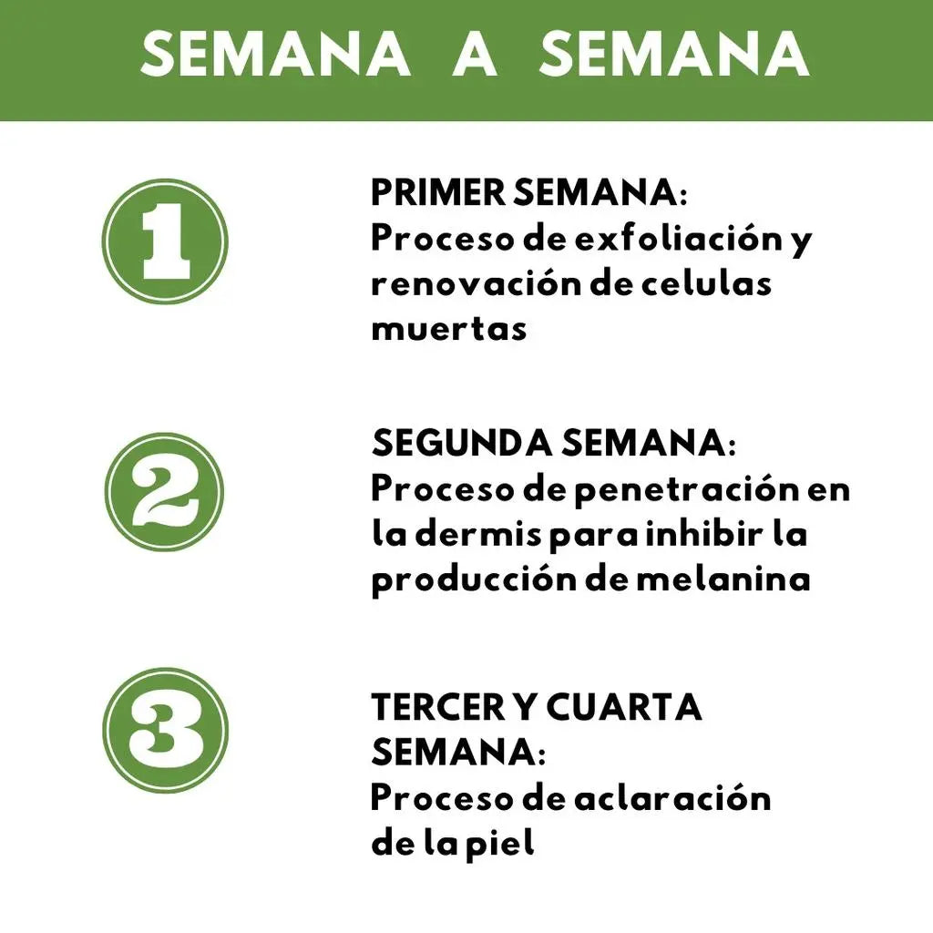 Aclara y Unifica el Tono Reduce visiblemente manchas de sol, edad y melasmas difíciles.