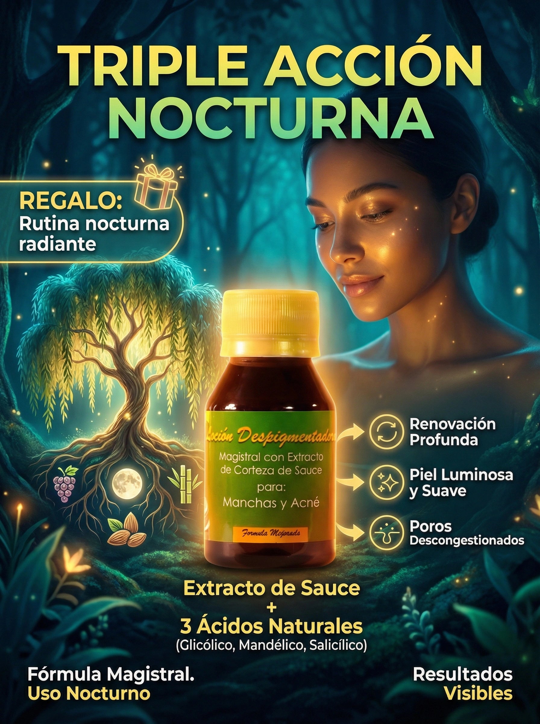 Fórmula 100% Botánica Extracto puro de sauce y ácidos frutales de grado profesional.