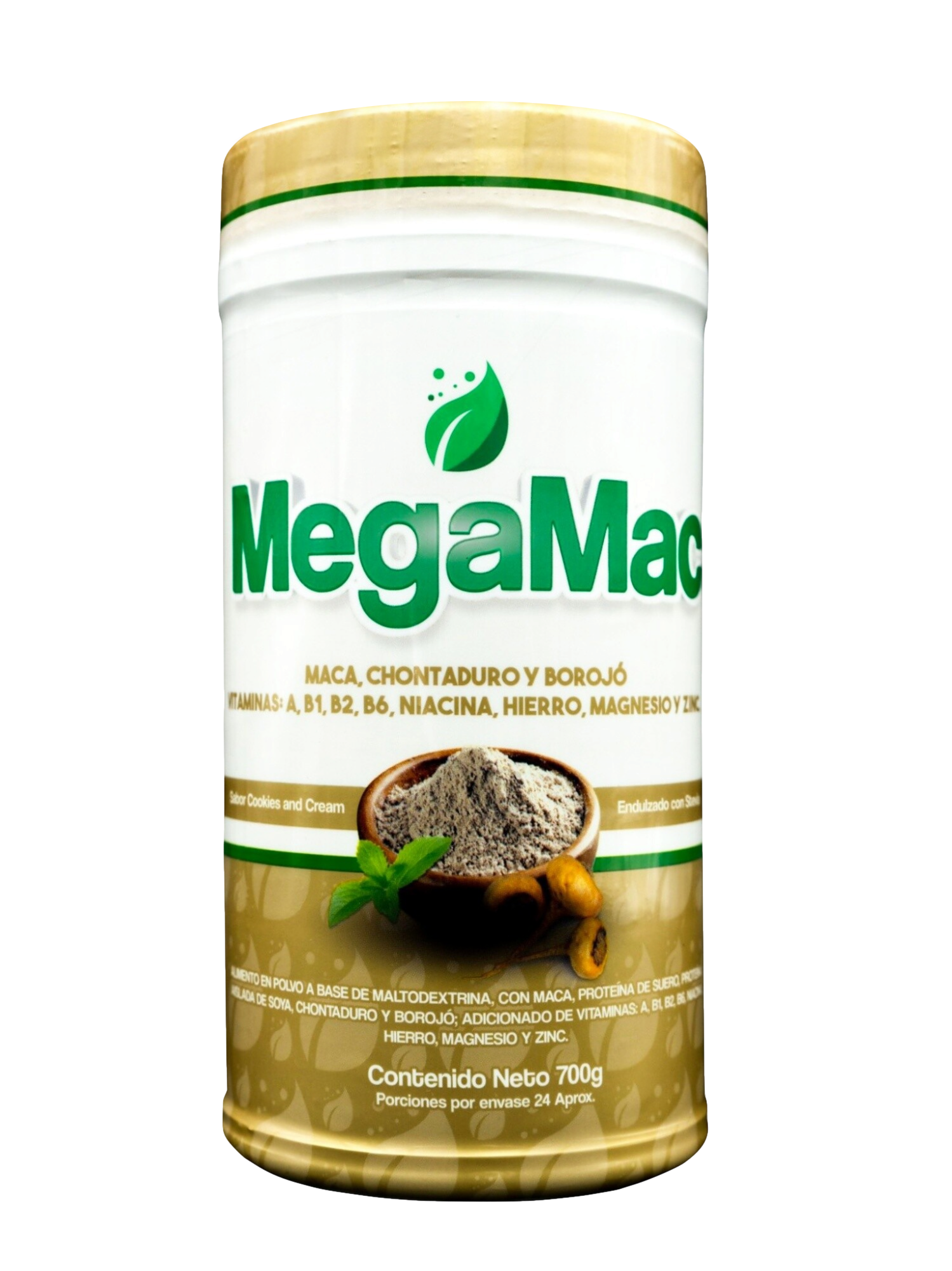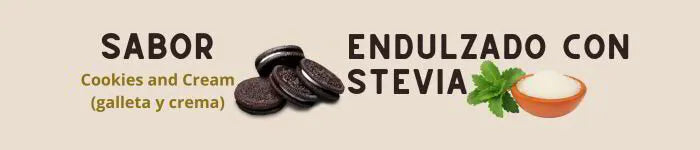 Viene en polvo de 700 gramos con sabor a galleta oreo. No contiene azúcar y rinde aproximadamente 24 porciones.
